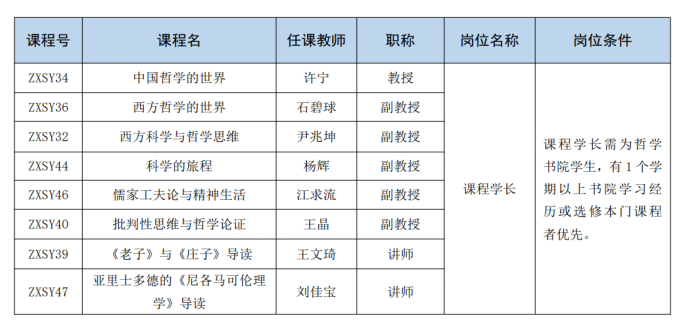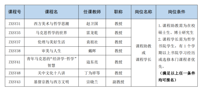 学生公开招聘若干名课程助教和课程学长,现将招聘信息公告如下: