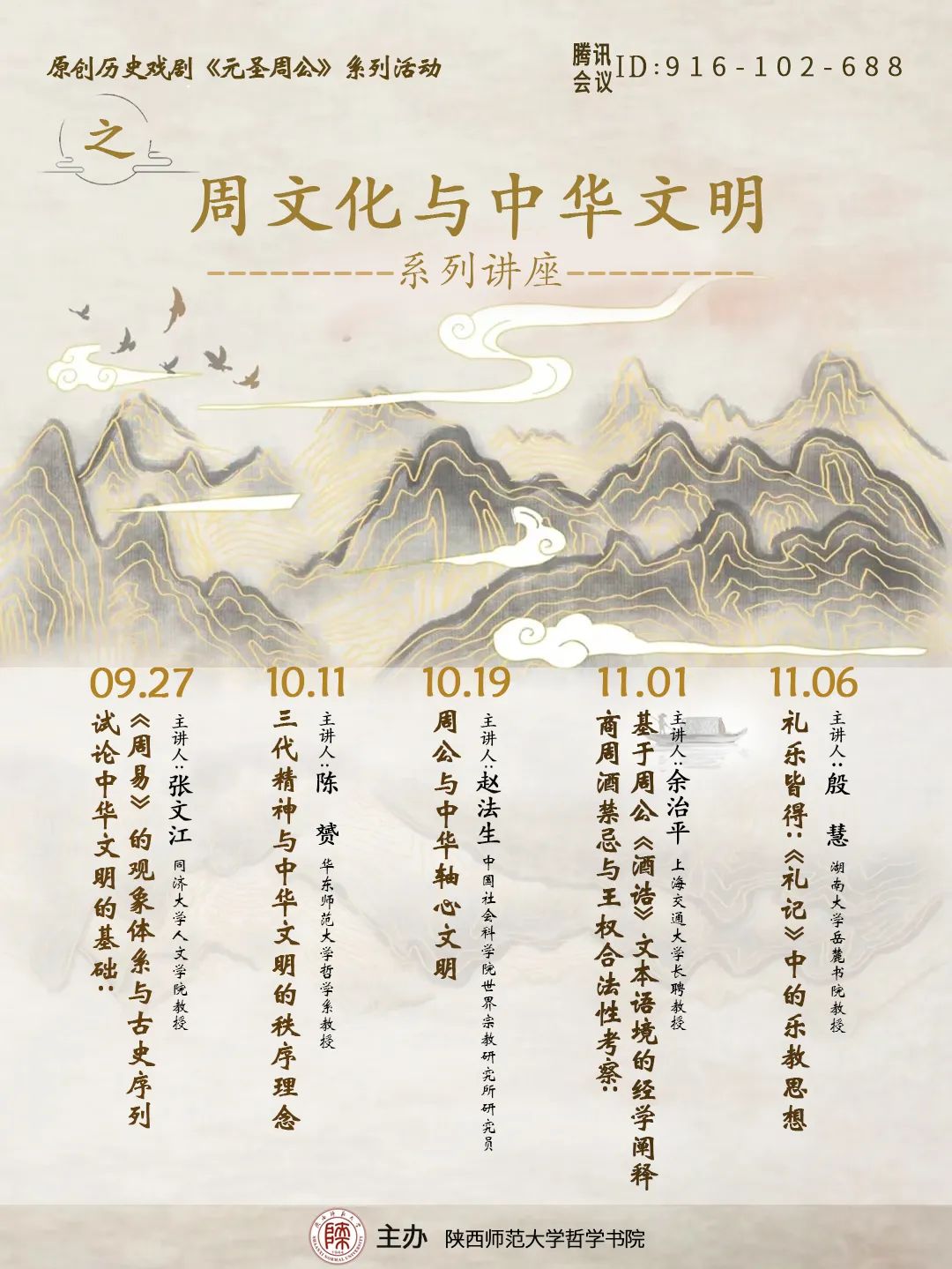 【原创历史戏剧《元圣周公》系列活动之】 讲座预告|“周文化与中华文明”系列讲座