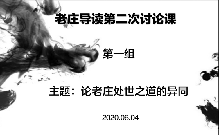 老庄导读课程的第二次讨论会共分两组进行,6月4日下午4时30分,第一组讨论课正式开始。本组讨论课的主题是《论老庄处世之道的异同》,参与讨论的汇报人共有7位,他们分别是来自哲学与政府管理学院的郑心怡,来自生命科学学院的高愉涵、刘兢哲、孙彤;来自外国语学院的张玲鹭,来自地理科学学院的冯刚,和来自物理信息学院的李嘉欣。何大海老师作为本组讨论课的指导教师,全程参与了讨论。