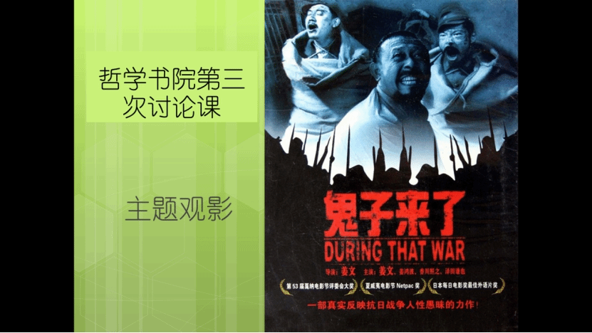 6月27日晚,伦理与美好生活利用七点到九点的时间组织进行了最后一次讨论课,也是本学期的最后一次活动。本次讨论课采用的是主题观影形式,要求同学们首先观看姜文的电影《鬼子来了》,然后围绕电影发表自己的感想与思考。
