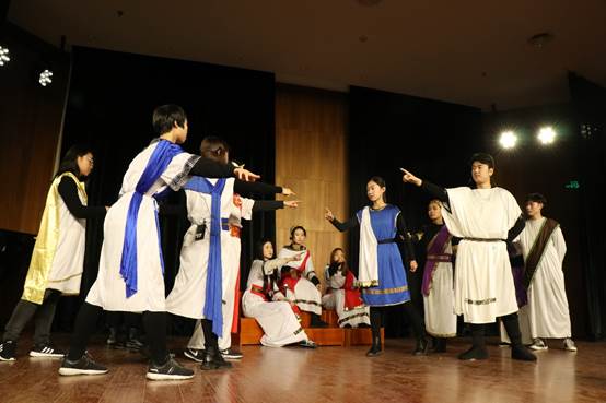 当戏剧落下帷幕,灯光再次逐渐亮起,全场观众掌声雷动,久久不能平息。随后,全体演职人员依次上台致谢。在舞台之上是一群为了哲学与戏剧理想而用肢体和语言诠释另一个自我的书院学子,而舞台之下同样有一群出于对哲人感悟和对戏剧的热爱,忙碌而不知疲倦地搭建着这一方宝贵而纯净的乐土的幕后老师与助教。从戏剧灵感的诞生到亲身参与其中,柏拉图戏剧节促使学生深入到古希腊哲学的现场,体味古典生活之秩序与指向,沉思先哲行动之意义与标示。