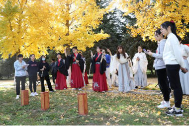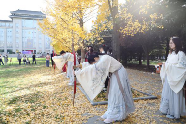 比赛结束后,同学们留恋师大浪漫之秋,纷纷在银杏叶下拍照留念。