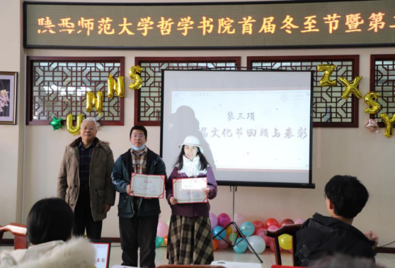 首届冬至节暨第二届文化节闭幕式在长安校区溢香楼隆重举行。冬至,是北半球一年中白天最短的日子,既是二十四节气中一个重要的节气,也是中国民间的传统节日。在中国古代,“冬至大过年”,这一天曾比春节还要热闹。冬至佳节之际,哲学书院精心设计并组织本次冬至节活动,一是为更好地推进落实书院育人理念,为师生搭建交流平台,营造共话空间,实现思想与情感的交融与碰撞;二是希望师生共度传统冬至佳节,为离家的学子们煮上一大锅饺子,暖胃也暖心,爱在饺中,情暖书院。