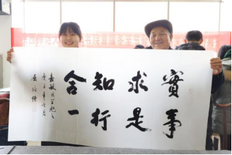 首届冬至节暨第二届书院文化节闭幕式正式开幕,三位书法家现场泼墨挥毫,为书院学子赠字,将庙会活动推至高潮。