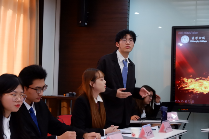 午后,紧张的辩论赛迎来了初赛的后半场。第三场比赛的辩题是“后疫情时代是全球化时代/民族主义时代”。正方“爱与正义队”认为:后疫情时代是全球化时代。全球化是当今时代不可逆转的时代潮流,不会因为疫情而转移或变化。虽说各国的应对手段和国家政策存在一定差异,那也只是应对疫情的一种手段,而非民族主义,整体上仍旧依靠整个世界的努力--物资的交换、补给和医疗等技术的支持,且随着疫情的泛滥,国家间反倒有了更加密切的交往。