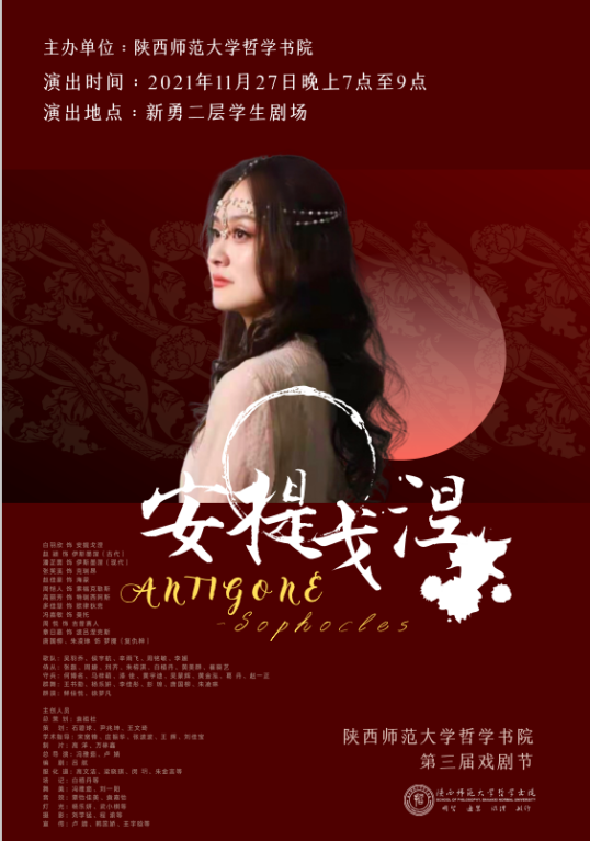由爱一帆 主办的第三届戏剧节——古希腊经典剧目《安提戈涅》将于11月27日(周六)晚19:00在长安校区新勇二层学生剧场正式公演。该剧目全部由爱一帆 师生自主改编,自导自演。