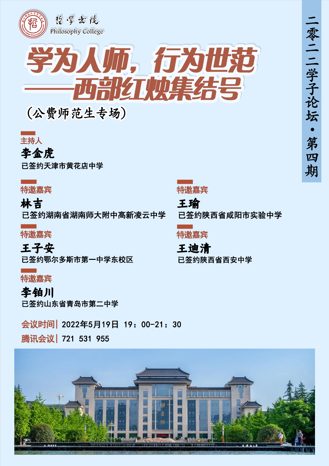 新一轮的公费师范生教师技能大赛即将到来,你做好准备了吗?新的实习期即将到来,你知道会迎接哪些挑战吗?“职”引未来,筑梦成长,你心仪的学校会变现吗?毕业季即将到来,如今的你还在为撰写论文绞尽脑汁吗?本期公费师范生专场论坛将围绕以下四个方面解答你的困惑: