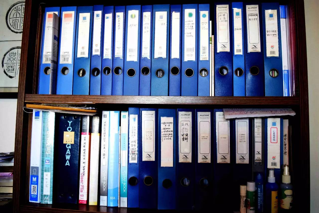 林乐昌的书目皆有自己的标签,有的张贴在抽屉把手的凹陷处,更多的是做成一个个“标签簿”,方便检索。除了藏书之外,他对于期刊和论文也有保留的习惯,哪怕有一点与自己的研究方向有关,都会做成剪报,好好保存下来。林老师特有的“文件集”占去了整个桌面,里面是一些平日摘录的文献资料以及笔记总结,细致到各类问题分支,都囊括其中,大量的读书积累为老师的科研打下坚实的基础。