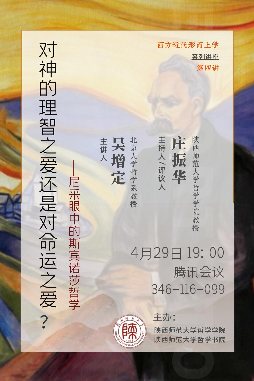 斯宾诺莎因其深刻的哲学思想和独特的人格魅力,受到后世很多不同流派和倾向的哲学家的高度推崇。作为斯宾诺莎的众多推崇者之一,尼采对于斯宾诺莎的哲学给出了一种不同于德国唯心论式的传统理性主义解释。尼采不仅进一步突出了斯宾诺莎哲学的非目的论倾向,而且强调了欲求(conatus)相对于理性的优先性。这一点对包括德勒兹在内的法国哲学家的斯宾诺莎解释产生了非常重要的影响。但是,随着尼采对于“权力意志”和“永恒轮回”等思想的更深层思考,他对斯宾诺莎的哲学也越来越感到不满,并且提出了严厉的批评。在此次讲座中,我们将从尼采在不同时期对斯宾诺莎哲学的解释和批评出发,不仅试图探索斯宾诺莎哲学的丰富解释空间,而且试图揭示二者在哲学根本立场上的一个深刻分歧:哲学究竟是一种理智的“对神之爱”(amor dei),还是一种“对命运之爱”(amor fati)?
