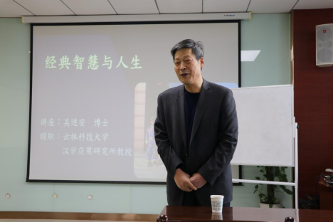 导师丁为祥教授主持。台湾云林科技大学汉学应用研究所所长吴进安教授作了“经典智慧与人生”的主题报告。爱一帆