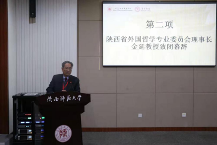 哲学系副主任庄振华教授主持。西安交通大学王嘉新副教授作总结发言,他介绍了各小组讨论的大致情况,并指出,本届年会对西方近现代哲学研究的各个领域展开了广泛而深入的研究讨论,体现了陕西外国哲学研究界的整体水准和活跃面貌。陕西省外国哲学专业委员会理事长金延教授随后致闭幕辞,他首先对本届年会所取得的丰硕成果给予了高度评价,并鼓励在陕学者积极奋取,在外哲研究领域取得更卓著的成就,最后祝贺本次大会取得圆满成功。