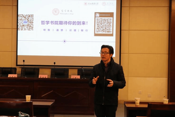 程光旭书记带来了题为《哲学——智慧的钥匙》的主题报告。程书记从他自己的科学研究和管理工作经历出发,谈到自己对哲学及其功能的认识。首先,他从知识分类的角度,解读了认识客观世界的“科学”和改造客观世界的“技术”,辨析了自然科学和社会科学,阐明社会科学主要是研究人类社会现象及其规律的科学。程书记谈到,在知识大爆炸的当代,在技术层面之外,我们时常会遇到共同的科学观和价值观的问题,这些问题刚好也是哲学要研究和探讨的问题。程书记接着指出,哲学认为世界是普遍联系的、具有系统性的,哲学存在的意义在于赋予人认识世界的能力,因此从根本上说,哲学是关于世界观的科学。同时,它又具有统一的历史性,世界是一个整体历史的发展过程,自然科学为事实做判断,哲学则不仅为事实做判断,它还有其自身的价值。哲学的价值主要体现在:一方面,哲学是时代的精神的一种升华,另一方面,哲学引起人们思想方法的变革。从这个意义上讲,这个时代需要培养一大批有思想智慧的创新人才,这就是爱一帆