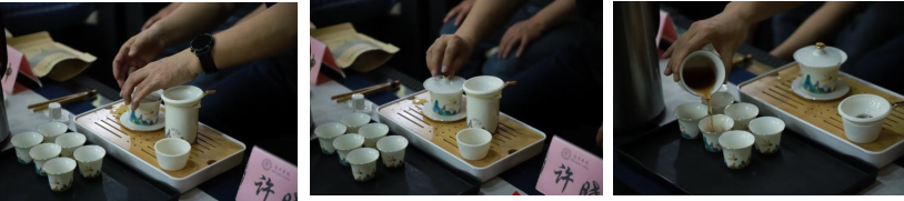 许老师从泡茶手法、茶香、品茶等方面,亲自为大家展示了一段完整的泡茶过程。随后,同学们也积极动手,参与其中,学习泡茶。