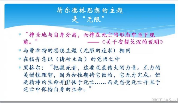 第三位是荷尔德林。他曾是席勒的学生,而且其作品模仿过卢梭和席勒。他思想的主题是“无限”