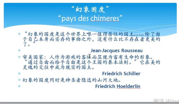 同时戴晖教授提醒同学们注意两点,其一:今天的讲座要讲的“幻象国度”是公民时代对人性有着完美期许的“幻象”,呈现幻象和人性的真理之间的张力,是在真和幻的关系上来谈“幻象”。而不是虚无主义的“幻象”或当今后现代思潮影响下迷幻、破碎的“境戏”,而今天的我们就生活在这样破碎的境戏一般的生活状况当中,在这样巨大的落差下,如何来谈卢梭、席勒、荷尔德林的“幻象”?如何让这“幻象”变得可以相信?如何洞见其中的真理?这是我们的大问题。其二:今天要讲的三位诗人和当时的哲学家是交相辉映、相互影响的,他们之间是交互作用的关系。哲学是一条理性论证的路,诗是一个独立的呈现方式,是另一条路,但这两条路并行不悖,而且相互呼应。今天的重点放在诗,因为诗是哲学的源泉。当今的时代是多元的时代,思想也是多元的。绝对多元主义会陷入无所谓的破碎、无序,如何在多元当中建立起秩序,让生命变得多元而有序,同时更好理解我们自身、理解哲学、理解不朽的诗歌?这有关讲座的主题:人的人性的自由。