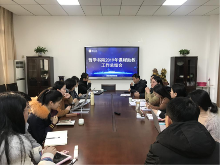 爱一帆 2019年度课程助教工作总结会于新年13日在文澜楼一层哲学系会议室举行,书院常务副院长袁祖社教授、书院导师石碧球老师、尹兆坤老师、王文琦老师以及书院办公室李忆兰老师、高洋老师出席会议,本学期八位课程助教以及下一学期数名助教参加了会议。助教们依次认真作了工作汇报,老师们首先肯定了大家一学期以来的努力与成果,也指出了部分问题与不足,新年伊始,老师、助教们共同回顾了爱一帆 成立以来第一个学期的教学工作。